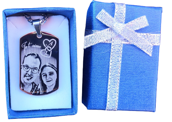 Option à 5€ pour graver la photo ET le texte (recto-verso possible)